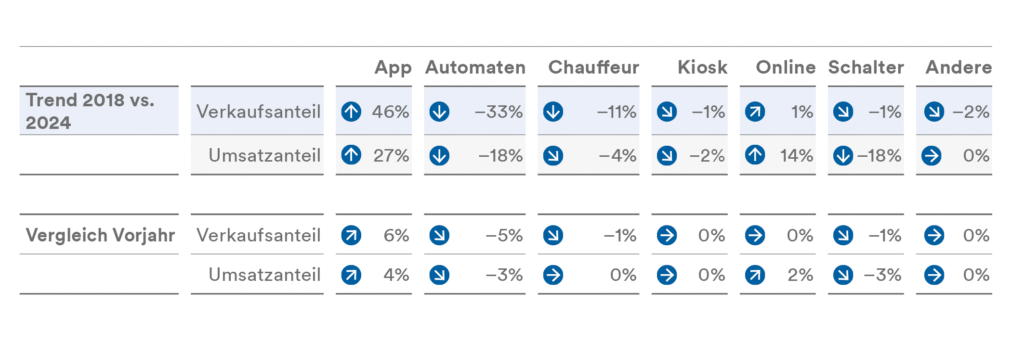 Die fortschreitende Digitalisierung im öffentlichen Verkehr hat auch 2024 zu einer weiteren Verlagerung der Ticketverkäufe hin zu digitalen Vertriebskanälen geführt. Mehr als 70 Prozent aller Passepartout-Tickets wurden 2024 digital verkauft, was einem Anstieg um 5,7 Prozentpunkte gegenüber dem Vorjahr entspricht. Während klassische Verkaufspunkte wie bediente Verkaufsstellen und Automaten weiterhin genutzt werden, zeigt sich eine klare Verschiebung hin zu Webshop- und Mobile-Verkäufen. Diese Entwicklung ist Teil eines übergeordneten Trends, der sich in der gesamten Schweiz zeigt.