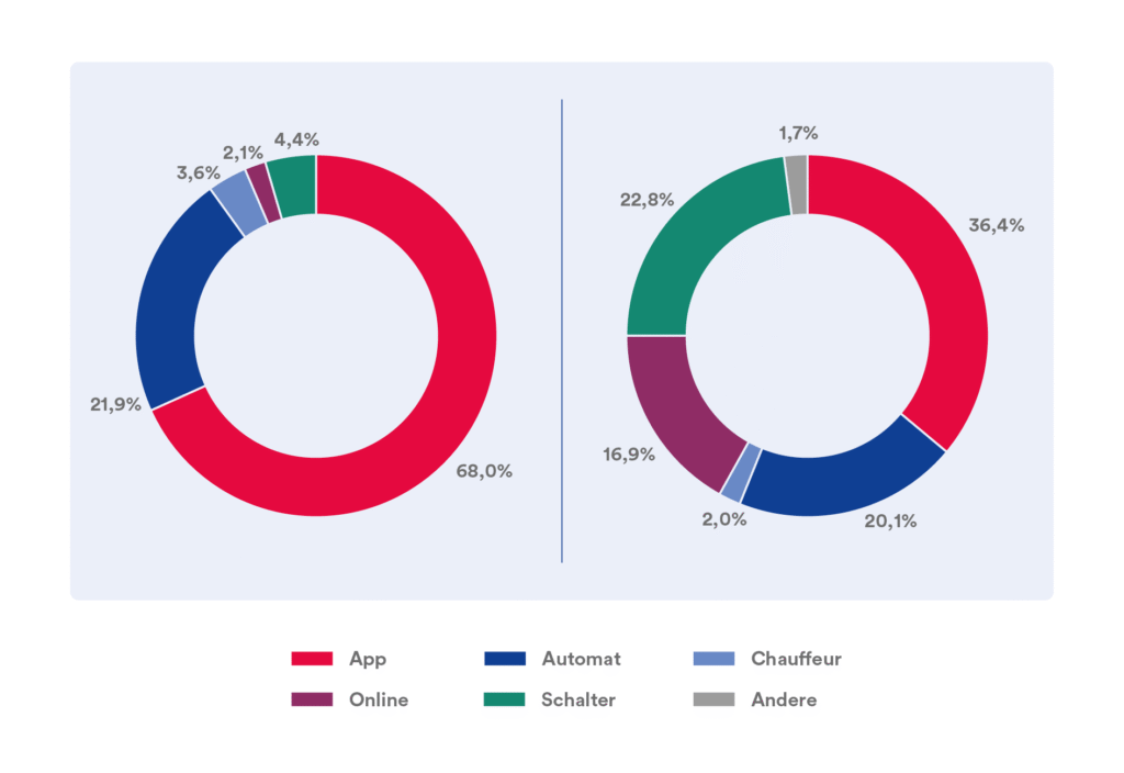 Die Umsatzverteilung nach Sortiment zeigt weiterhin eine hohe Bedeutung der Abonnemente, während Einzelfahrausweise überdurchschnittlich gewachsen sind. Die Jahresabonnemente erzielten eine Zunahme von 4,2 Prozent, während die Monatsabonnemente um 3,5 Prozent wuchsen. Der Bereich der Einzelfahrausweise verzeichnete mit 9 Prozent ein starkes Wachstum, wobei insbesondere die Tageskarten mit einem Zuwachs von 15,6 Prozent besonders gefragt waren. Die Mehrfahrtenkarten hingegen entwickelten sich rückläufig und verzeichneten ein Minus von 10,6 Prozent.